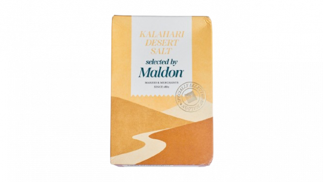 Sól Kalahari Selected by Maldon to wyjątkowa sól kamienna pochodząca z naturalnych złóż na pustyni Kalahari w Afryce Południowej. Kryształy soli mają średnicę od 2 do 4 mm, co czyni ją idealną do stosowania zarówno w mniejszych ilościach do wykańczania dań, jak i podczas gotowania. Sól wyróżnia się zrównoważonym smakiem, bez nadmiernej twardości czy chropowatości, a jednocześnie jest bogata w naturalne minerały jak potas, magnez i wapń, które wzbogacają smak potraw i mają walory zdrowotne. Jest to produkt premium, przyprawa doskonale sprawdzająca się do mięs, ryb, warzyw, sałatek i deserów.