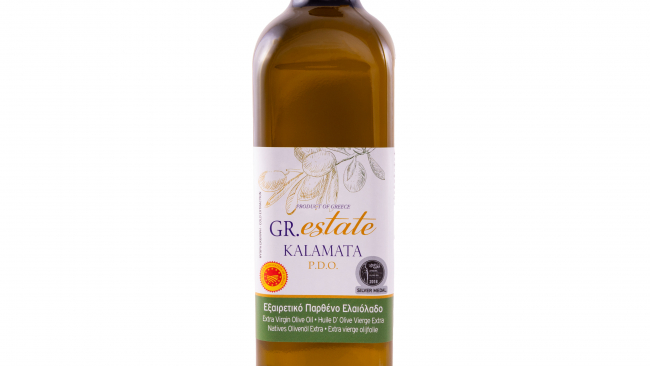 Oliwa z oliwek z pierwszego tłoczenia (Extra Virgin Olive Oil – EVOO) z regionu Kalamata (Peloponez, Grecja), oznaczona jako P.D.O. (Protected Designation of Origin), co gwarantuje pochodzenie i jakość.